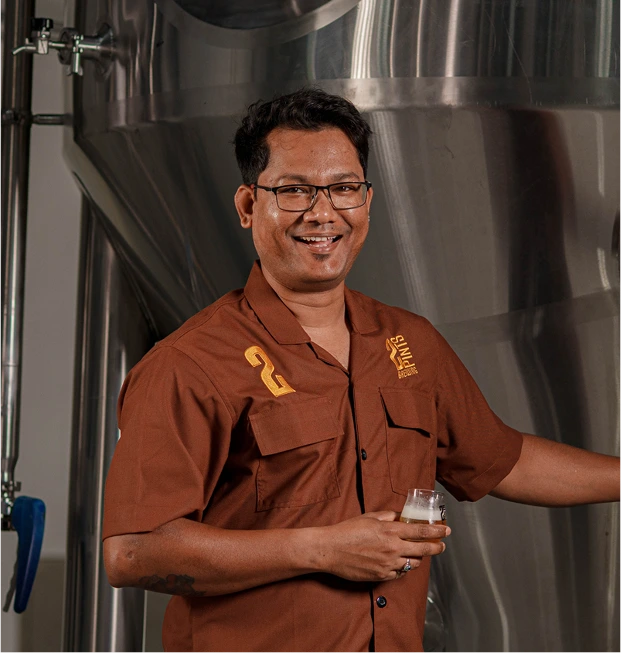Originally from Hooghly, West Bengal, Sajal’s journey into brewing began in an unexpected way. In 2010, he moved to Bengaluru in search of better opportunities, starting his career as a steward. Soon after, he joined a local craft brewery where his curiosity led him to spend extra hours in the brewery assisting the American brewmaster. His dedication and persistence paid off when he was given the chance to learn the craft of brewing — a moment that transformed his career.